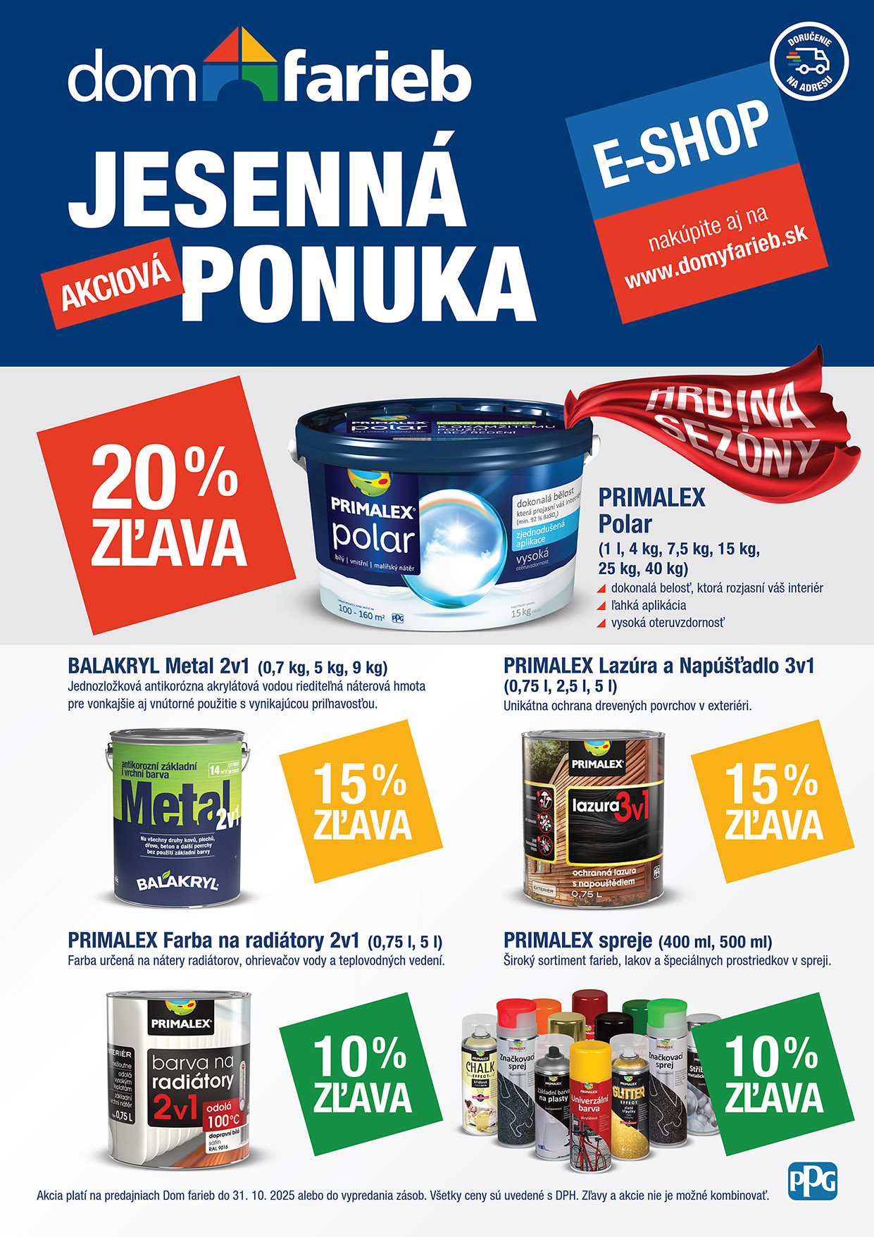 - Primalex spreje – Široký sortiment farieb, lakov a špeciálnych prostriedkov v spreji