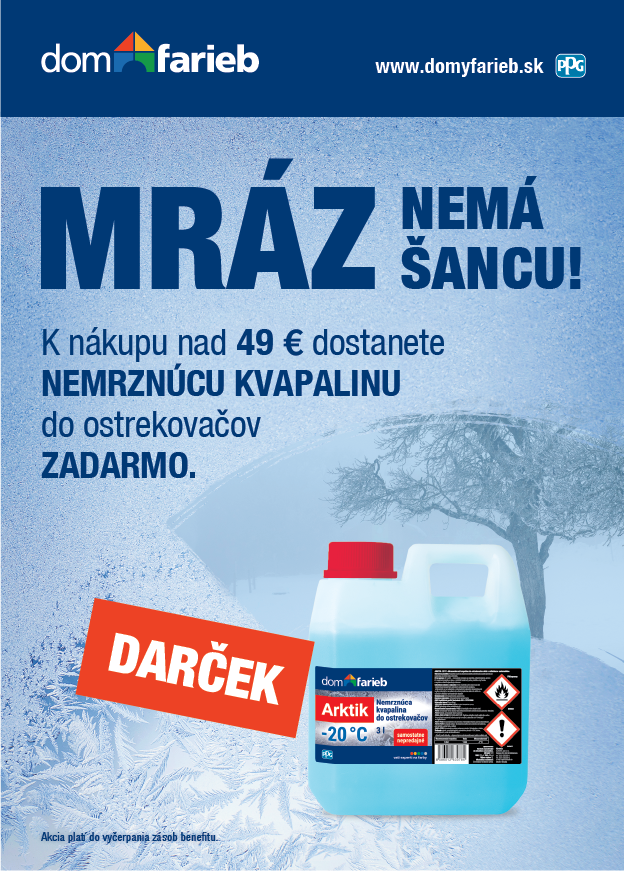Preto vám k nákupu nad 49 € pribalíme nemrznúcu zmes ZADARMO – aby vám v zime nič nezamrzlo ani v garáži, ani na ceste. 🚗💨