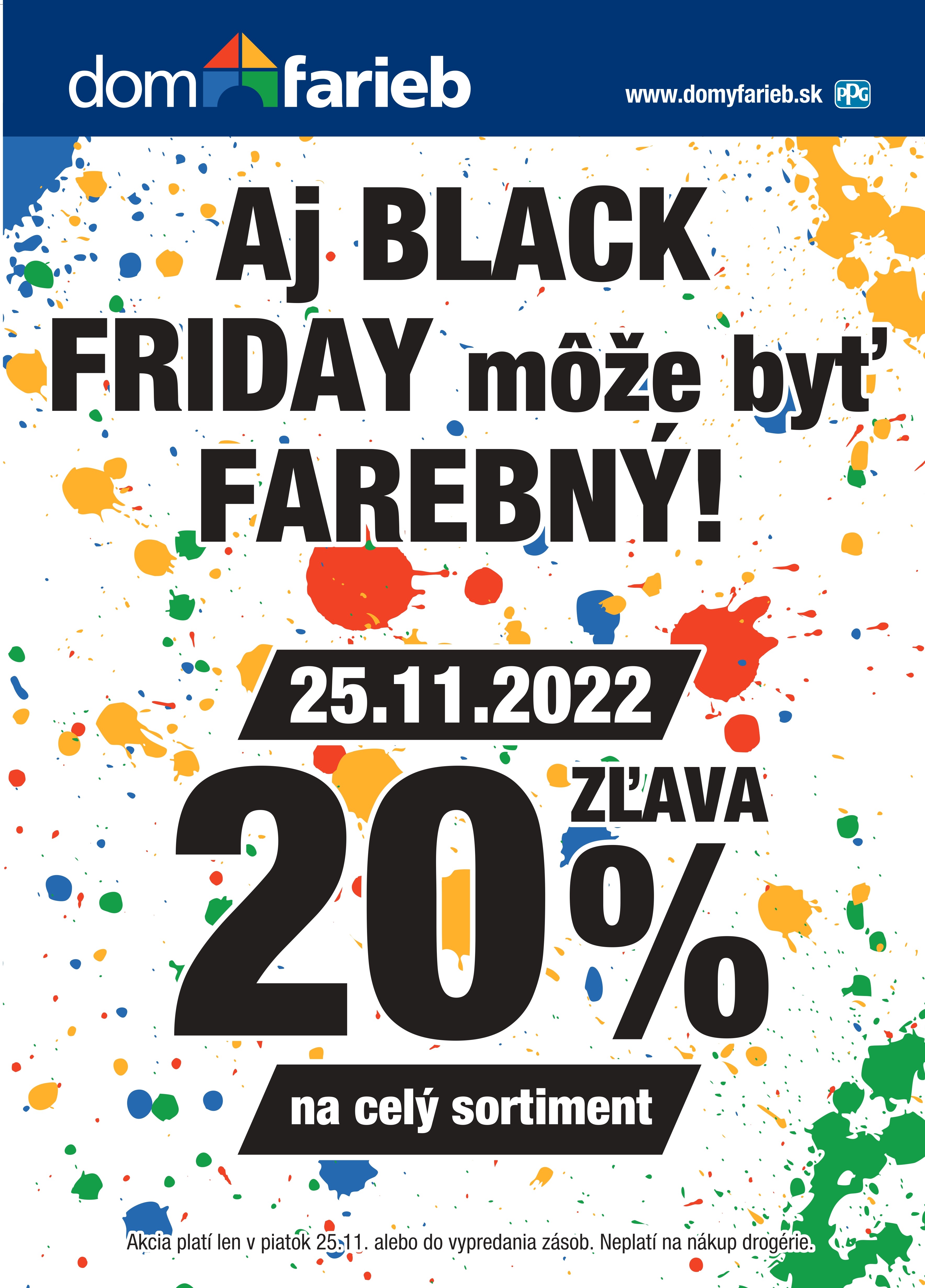 * Akcia platí len v piatok 25.11.2021 alebo do vypredania zásob na vybraných predajniach Dom farieb. Akcia neplatí na nákup drogérie.