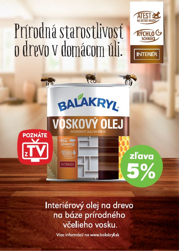 Okrem toho sa môžete tešiť aj na 5 % zľavu na interiérový olej na drevo Balakryl Voskový olej, ktorý poznáte z TV reklamy.