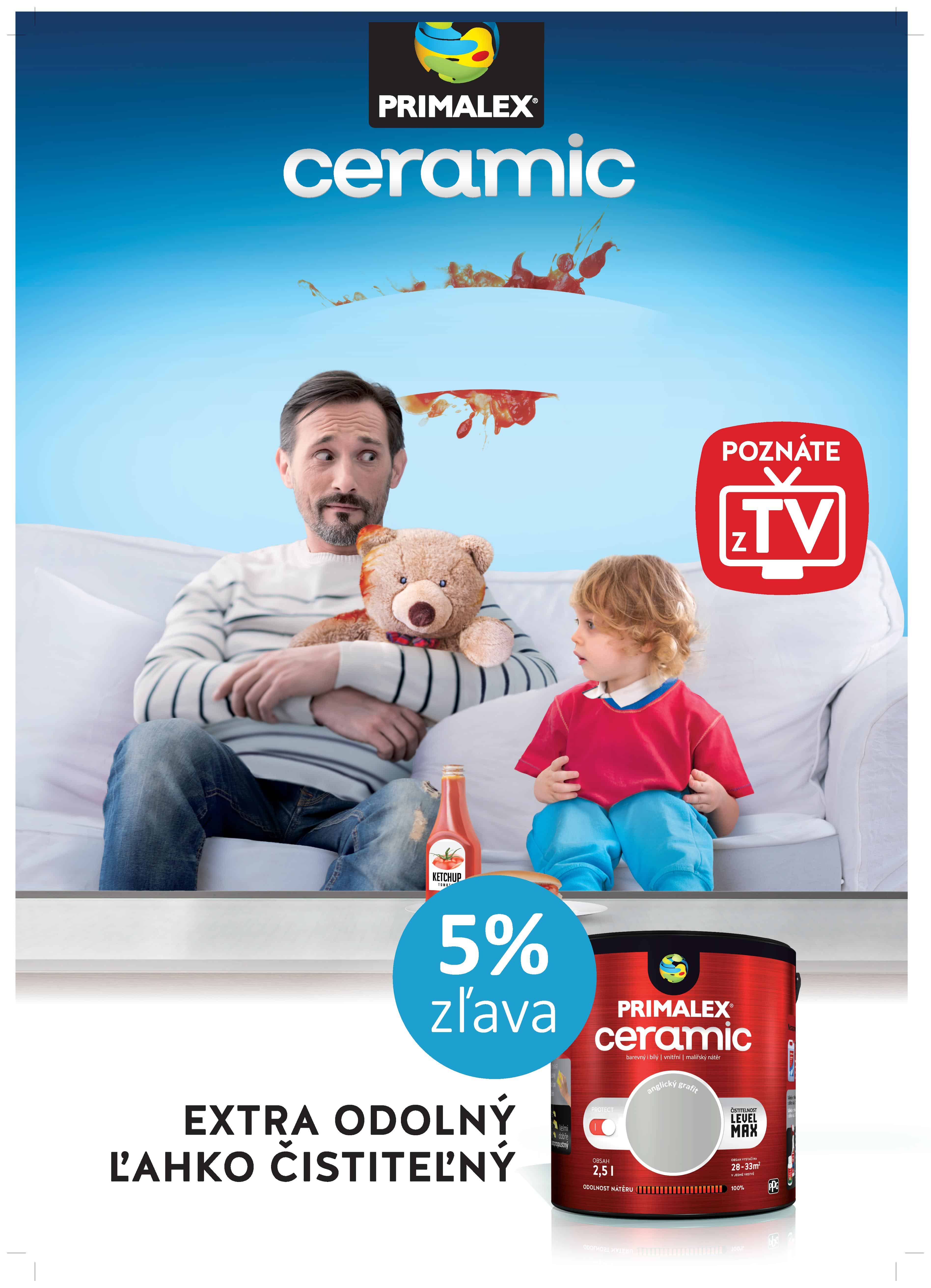 Okrem toho sa môžete tešiť aj na 5 % zľavu na umývyteľnú a čistiteľnú interiérovu farbu Primalex Ceramic, ktorú môžete teraz vidieť aj v TV reklame.
