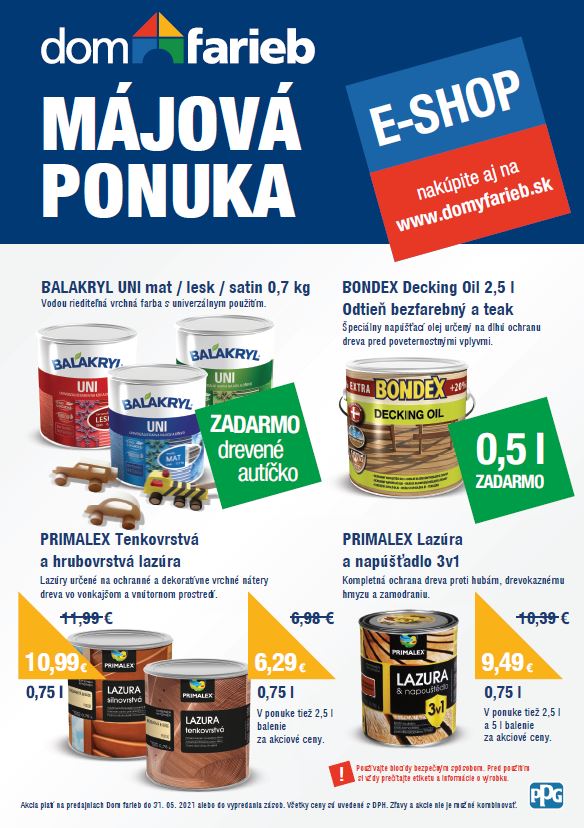 Využite mesiac máj a nakúpte lazúry a oleje na drevo za akciové ceny: