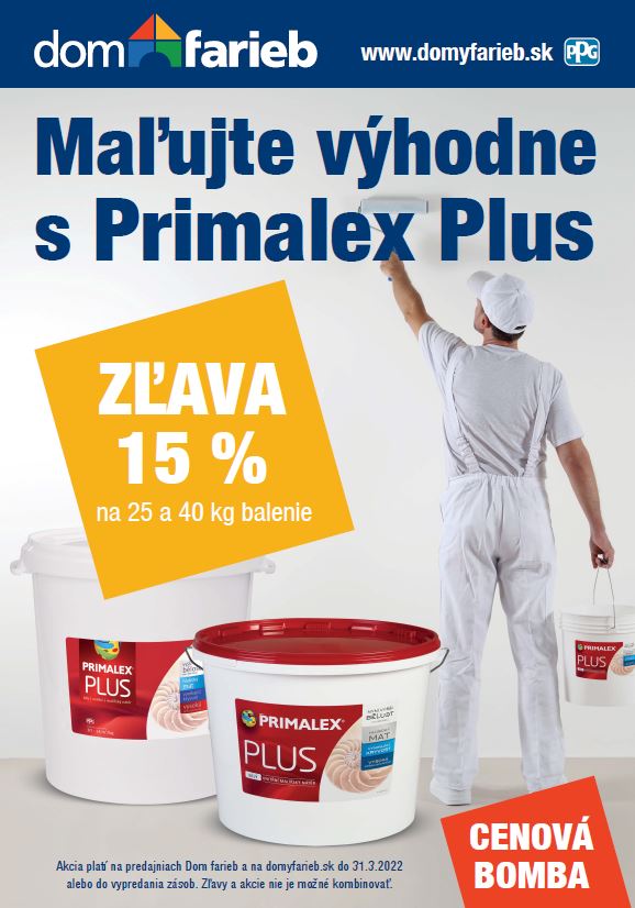 Akcia platí v kamenných predajniah Dom farieb alebo v našom e-shope domyfarieb.sk až do 31.03.2022 alebo do vypredania zásob.