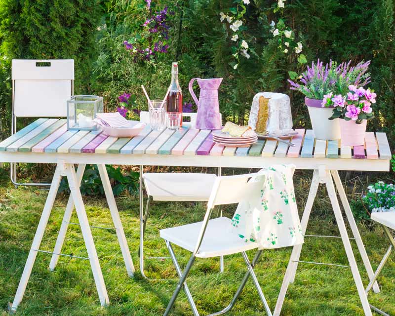 Chcete, aby vaša záhrada bola rajom pokoja a harmónie? Potom by ste nemali zabúdať na štýlový záhradný nábytok a dekorácie. A nemusíte ani kupovať predražené dizajnové výrobky. Dokonalý záhradný nábytok a dekorácie si vyrobíte hravo sami zo starších kusov. Stačí k tomu Bondex Garden Colors. Táto dekoratívna krycia lazúra je vhodná na drevo, kov, ako aj na betónové a tehlové povrchy. Pustite sa do natierania stoličiek, stolov, truhiel, kvetináčov, kanvíc alebo dokonca starého šijacieho stroja.
