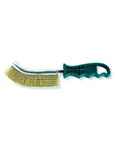 Viacúčelová drôtená kefa s oceľovými drôtmi a plastovým držadlom.