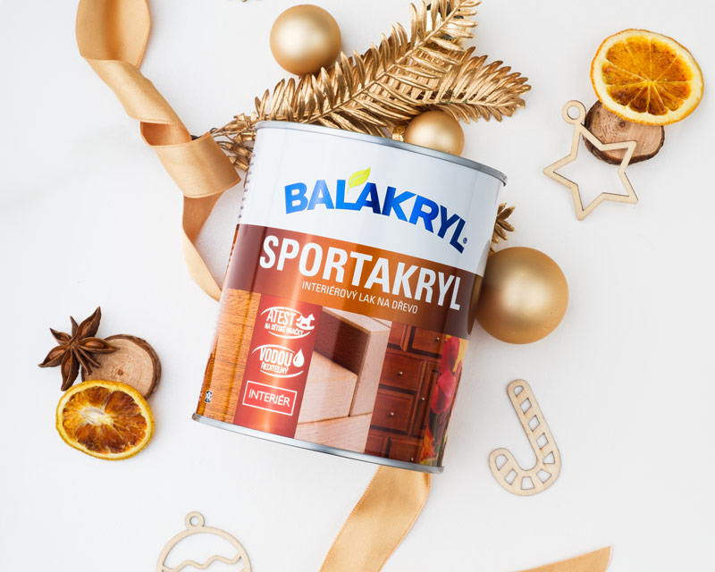 Vkus stále viac ľudí sa obracia späť k prírodným materiálom. Nablýskané dekorácie nie sú váš šálok kávy a radšej by ste chceli drevené ozdoby alebo dokonca netradičný vianočný stromček z dreva? Zaistite si ich dlhú životnosť interiérovým lakom Balakryl Sportakryl! Tento vodou riediteľný akrilový lak je rýchloschnúci a bez zápachu. Môžete si vybrať, či pre svoje dekorácie zvolíte dokonalý lesk, alebo matný vzhľad. Receptúra laku Balakryl Sportakryl je vhodná aj na nátery hračiek, detského nábytku a podkladov, ktoré prichádzajú do priameho kontaktu so suchými potravinami.