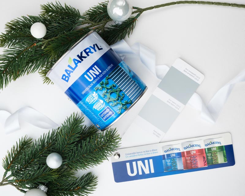 Omrzeli vás už stále rovnaké ozdoby na stromček a chcete zmenu? Nebojte, nemusíte si kupovať ďalšiu farebnú sadu, ktorá vám potom bude zaberať miesto v skrini. Balakryl UNI je pre vás ideálnym riešením! Táto vodou riediteľná vrchná farba je dostupná v 18 farbách, takže fantázii sa medze nekladú. Navyše je vhodná aj na hračky alebo detský nábytok a má atest na priamy styk s potravinami. K novému stromčeku tak môžete zladiť napríklad aj tácku na koláčiky.